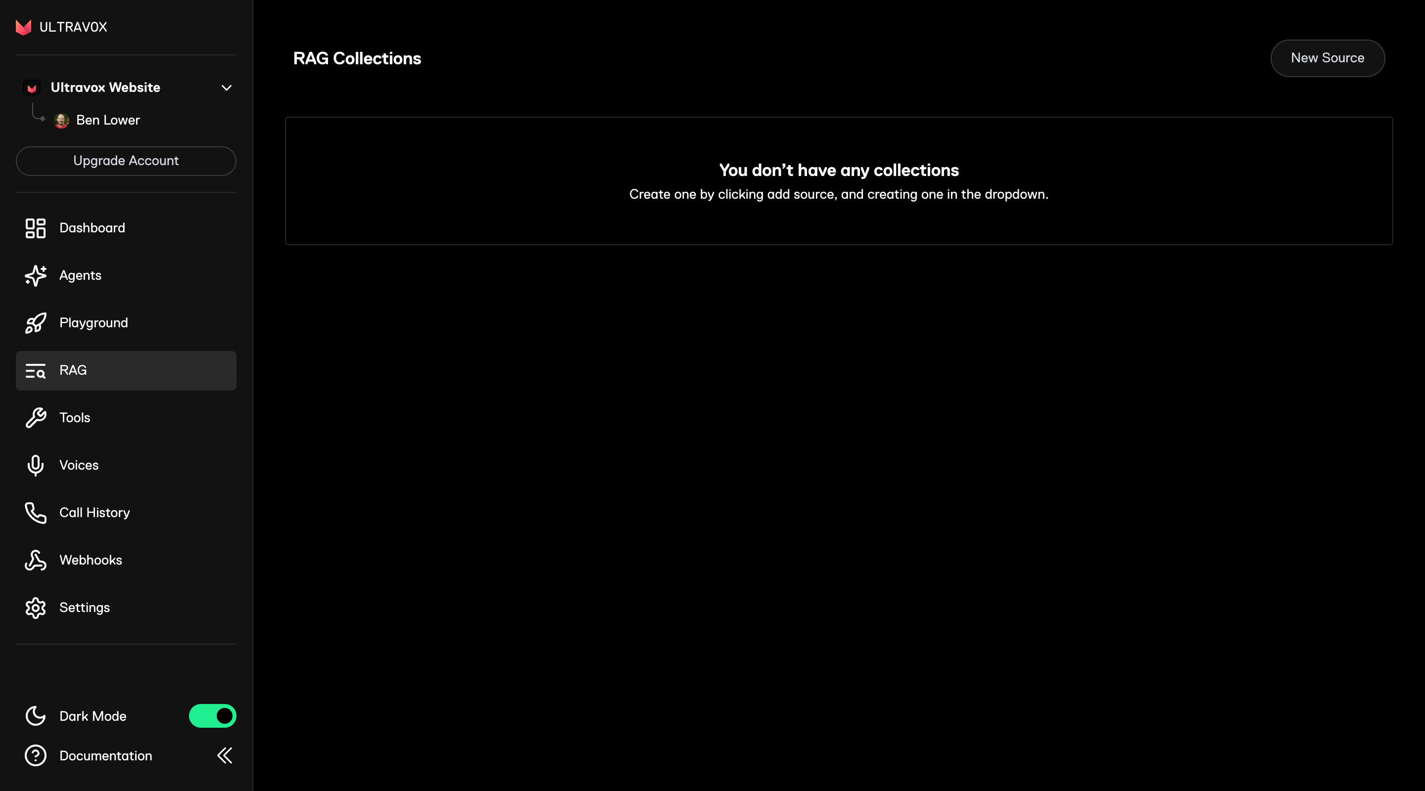 - Go to RAG in the Ultravox web app.